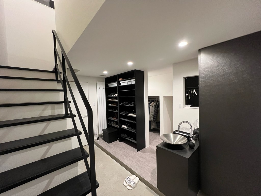 動線を良くするために作られた長いシューズクローク。これでスペースはかなり使いましたが、快適な生活が送れそうです☺️✨