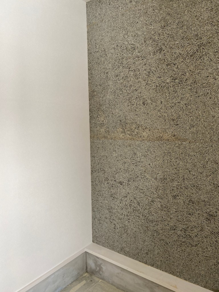 ちなみに「たけお」お気に入りの「木毛セメント板」をこちらの物置のアクセントに使っています✨