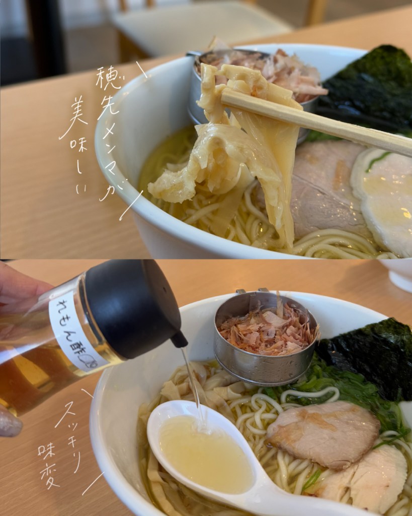 鰹スープに鶏清湯を合わせたWスープが美味しい💕