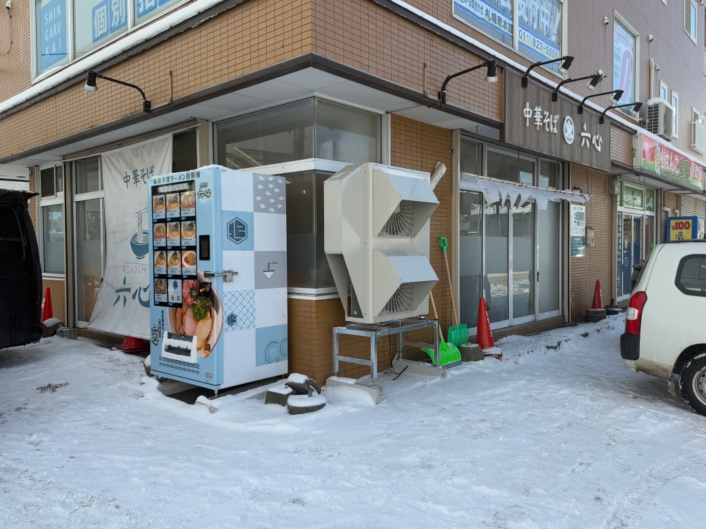 外の自販機でいつでもラーメンや炒飯を購入することができます。