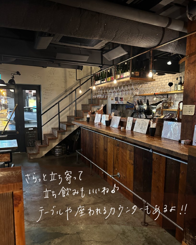 立ち飲み席やカウンターとテーブル合わせて50席あるので、気軽に立ち寄ることも^^
