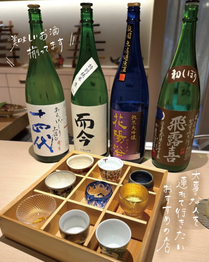 日本酒のおちょこを選べるスタイルで、気分も上がります。