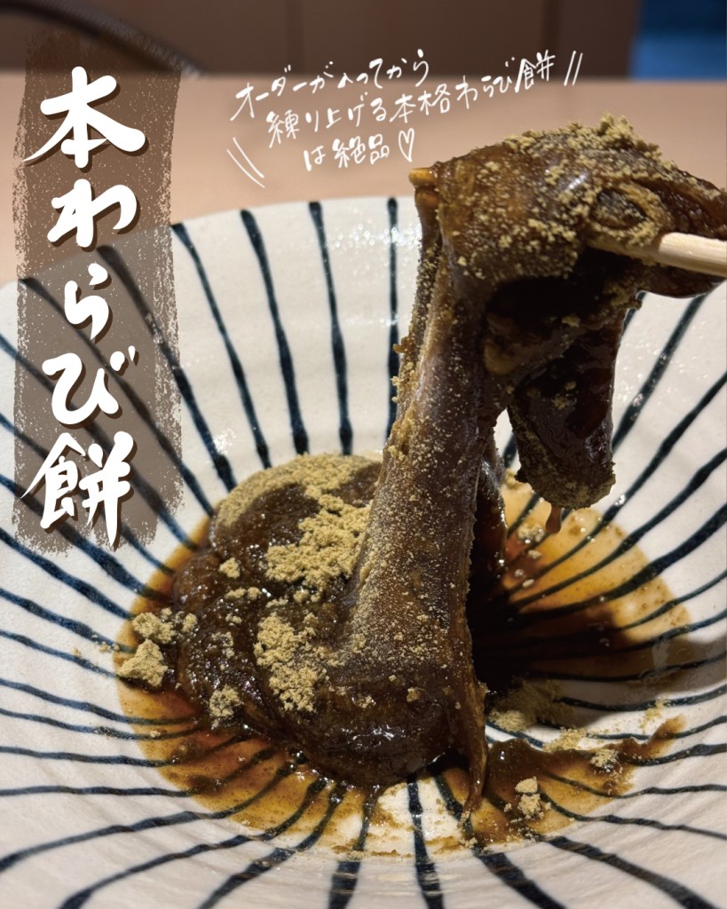 出来立てのわらび餅は、とろんともちぷるで最高に美味しいです♡