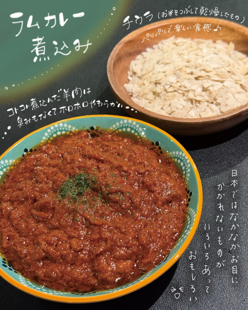 ラムカレーは羊のお肉をコトコト煮込んでほろほろになっているので旨みもたっぷり出て美味しいんです。