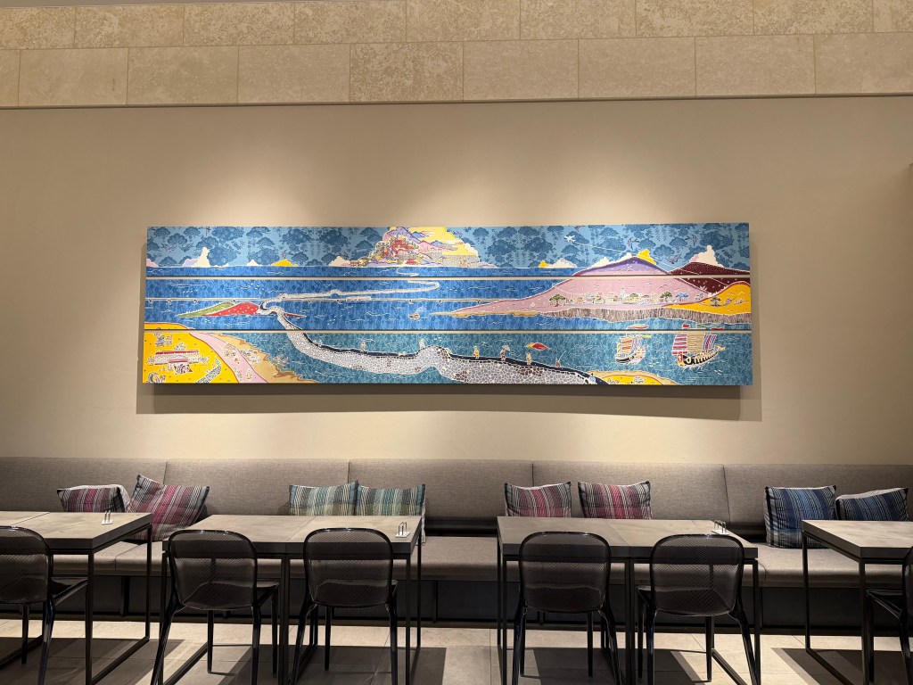 ダイニングに飾られているこちらの絵画。よーく見ると、コンビニが描かれていたり、首里城があったり「古き良き」と「新しい時代」がこの一枚に表現されているんです。