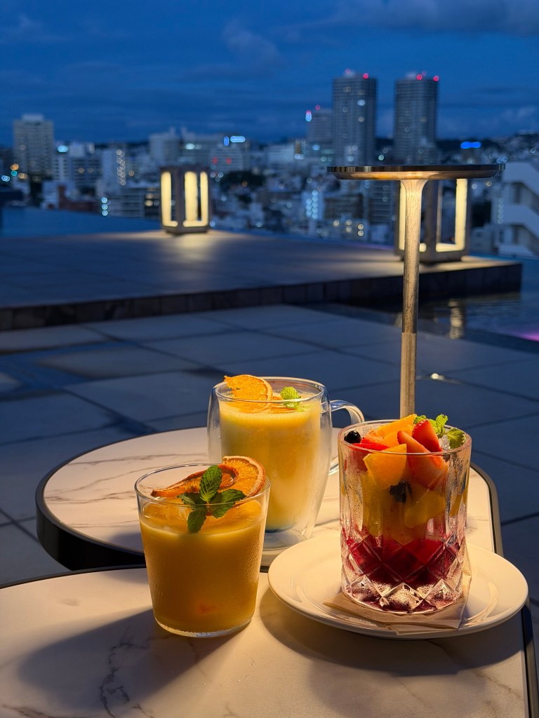 このルーフトップバーで過ごすの楽しみにしてたので、夕方チェックインしてからしばらくバーにいましたが、時間が経つにつれて変わっていく空の色を楽しめて最高でした♡昼間の利用ではアフタヌーンティーもあるようですよ♪