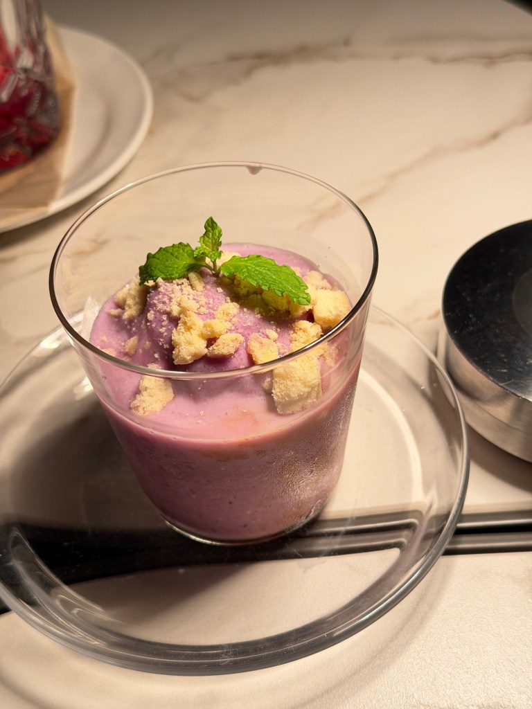 沖縄っぽい、紅芋プリンカクテル頼んでみました。上にはちんすこうがのっていました^^