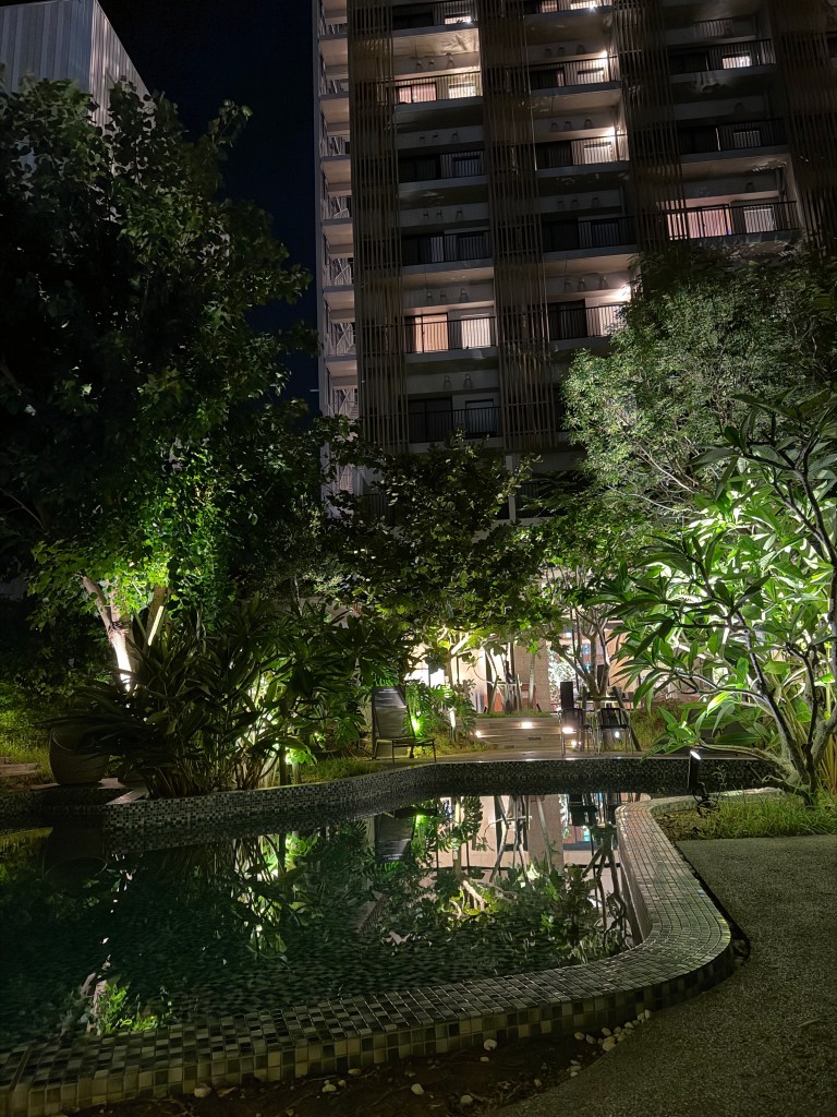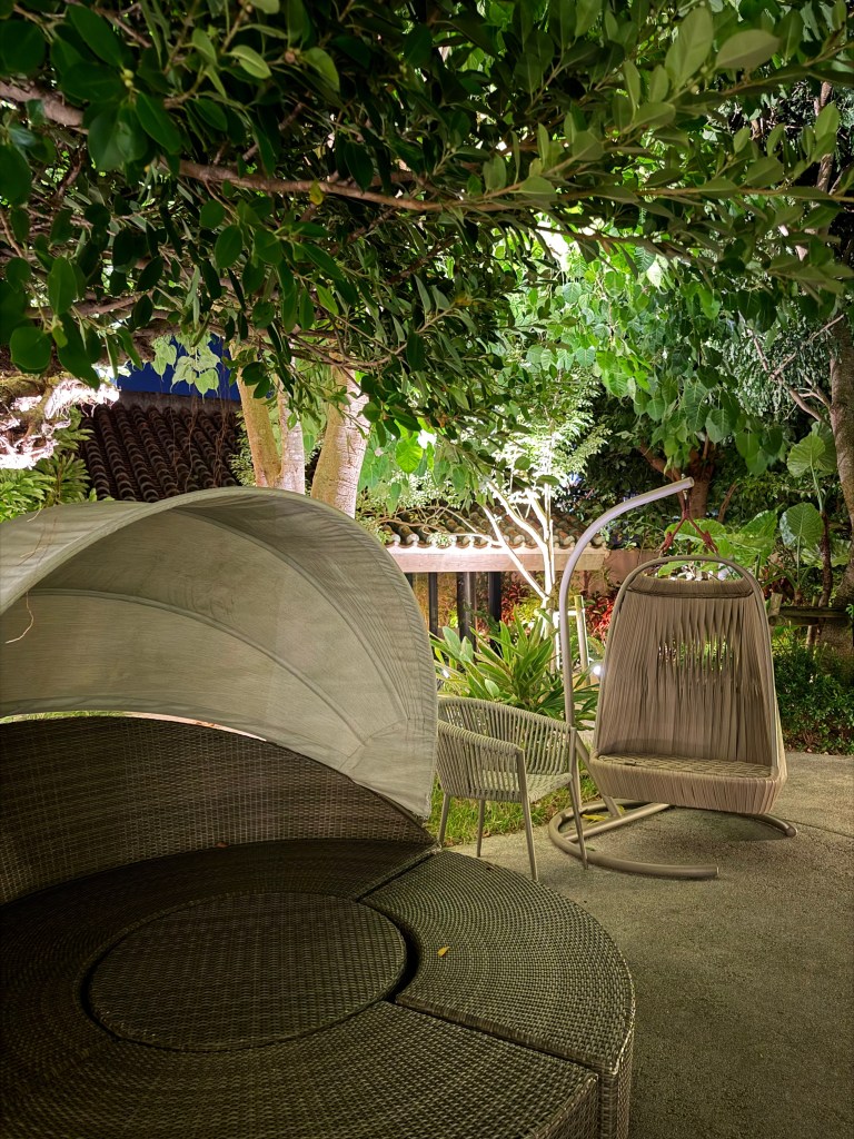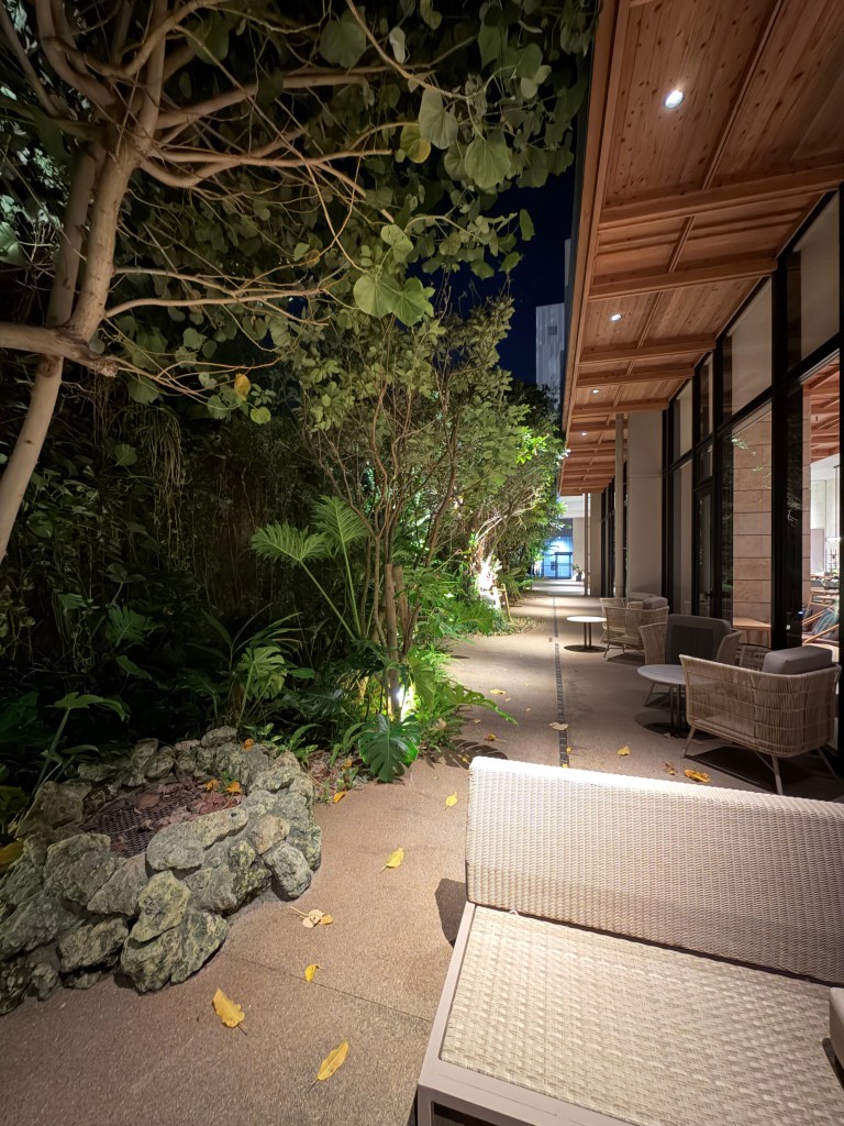 夜のガーデンはとても静かで、沖縄の音がします。虫の声、謎の生き物の声。