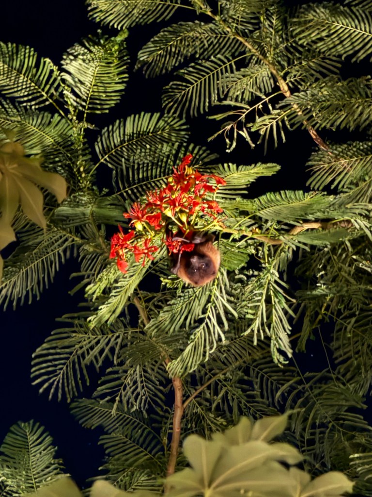 はじめてオオコウモリを見た時は、あまりの大きさにびっくりしてちょっと恐怖でした。だってコウモリって小さい生き物だと思ってたから。。。